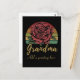 Envía esta tarjeta postal con estilo vintage angustiada con tu propio mensaje personalizado en la parte delantera y trasera. Cuenta con una rosa roja clásica frente a un fondo de atardecer retro angustiada y la palabra "Abuela" en fuente dorada.