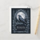 Establece el tono para un ambiente nocturno místico con esta postal de cuervo gótico. Las imágenes presentan una silueta de luna llena impactante combinada con un intrincado detalle de enredaderas en una paleta de azul profundo de medianoche. Es la forma perfecta de celebrar un saludo espeluznante de Halloween o un regalo considerado para un fanático de la literatura gótica.