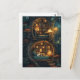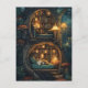Postal Acogedor gato en una biblioteca de tesoros mágicos