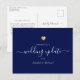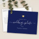 Perfecto para cualquier actualización de boda, este diseño de script mínimo es elegante e intemporal. Ya sea que la razón para posponer a su boda sea un desastre natural, la muerte en la familia o una pandemia - esto facilita enviar una nota rápida acerca de un cambio de fecha, postergación, cambio de ubicación o cualquier otra noticia. En la parte posterior, encontrará un cuadro de texto personalizado para su actualización personalizada, así como espacio para firmar personalmente las tarjetas. Esta es la versión azul marino con un corazón dorado dulce en la parte delantera, combinando un aspecto caligráfico con letras a mano con la tipografía moderna.