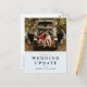 ¿Necesita cancelar o posponer a su boda debido a circunstancias desafortunadas? Desastres como las pandemias, los desastres naturales, las enfermedades, la muerte pueden asestar un golpe aplastante a un gran día. Envíe un aviso a amigos y familiares con esta simple y elegante postal que incluye una foto. En la parte trasera se incluye un gran bloque de texto personalizado con la redacción sugerida. También hay espacio para que lo firme. El esquema de color azul cielo y negro se puede editar haciendo clic en "personalizar más adelante". También trabaja para otros eventos que necesitan ser pospuestos como fiestas de graduación, paseos, recaudaciones de fondos, galas, reuniones familiares y más.