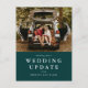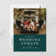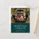 ¿Necesita cancelar o posponer su boda debido a un desastre desafortunado? ¿Pandemia? Hurricane Supadupas? ¿Muerte en la familia? Envíe un aviso a sus amigos y familiares con esta simple y elegante postal. En la parte trasera se incluye un gran bloque de texto personalizado con la redacción sugerida. También hay espacio para que lo firme. La parte frontal presenta un fondo verde jade rico con texto blanco junto con una foto cuadrada única. Los colores se pueden editar haciendo clic en el personalizar. Perfecto para novias y parejas de coronavirus.