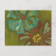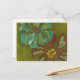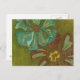 Postal Acua y flores de Naranja quemadas en fondo verde