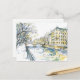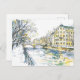 serena acuarela de una escena invernal en el distrito de Spandau de Berlín, con edificios históricos a lo largo del río Havel, que captura la atmósfera tranquila.