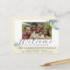 Un diseño divertido, alegre y fresco de acuarela con azules agua y colores cremosos para una tarjeta personalizada de foto e información de Bienvenido al Barrio para la familia. ¡Genial para dar con algunas flores frescas o galletas!