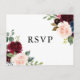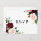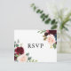 Elegante postal RSVP con ilustracion acuático de flores de color azul, borgoña y azul con acentos folláricos. Esta tarjeta de respuesta floral es perfecta para bodas de otoño o otoño. Personalice agregando sus propios detalles. También podrás elegir entre tres comidas. Los elementos coincidentes están disponibles.