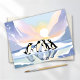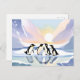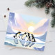 Postal Acuarela de invierno de pingüinos | Nieve y cola d
