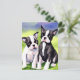Adorable par de cachorros en blanco y negro del Boston Terrier - Una AI creó una postal digital de arte acuarela