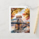 Disfrute del encanto mágico de Budapest en otoño con esta cautivadora postal al estilo acuarela. Con cálidos tonos rojos, naranjas y dorados, el diseño retrata maravillosamente los monumentos emblemáticos de la ciudad, como el edificio del Parlamento y el Puente de las Cadenas, enclavado en el vibrante follaje otoñal. Un lugar perfecto para viajeros, amantes del arte y coleccionistas.