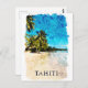 Postal Acuarela de playa de la Polinesia Francesa Tahiti