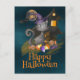 ¡Acepta el encanto de Halloween con nuestra tarjeta de postales de color negro "Feliz Halloween"! 🎃 🌙 💌 Esta cautivadora postal es una mezcla cautivadora de encanto y capricho de Halloween. En el fondo de una luna llena, un lindo gato negro color agua tiñe a un gorra de brujas y se sienta encima de un montón de dulces coloridos. Arriba, un murciélago sale volando por el cielo iluminado por la luna. El mensaje "Halloween feliz" está orgullosamente impreso para anunciar tu espíritu de Halloween. Envíe sus deseos de Halloween con una sonrisa y una ramificación de encanto espeluznante. Prepárate para encantar la temporada con esta encantadora postal. 🌟 🍬 👻