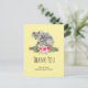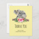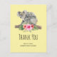 Gracias postal con un adorable diseño de acuarela. Madre de oso y bebé Koala. El bebé está a la espalda de mamá. Parado en una rama de árbol. Un ramo de flores de hibisco debajo de ellas. Fondo amarillo banana.