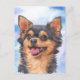 Acuarela linda del mascota del perro de la chihuahua de la plantilla con el cielo azul para el amante de la chihuahua