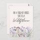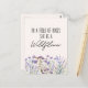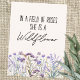 Presentamos nuestra tarjeta de posteos de citas acuarelas Purple Wildflower Meadow con un campo de lavanda y un texto "en un campo de rosas ella es una flor silvestre" en fuentes de moda. Perfecto para los amantes de las flores silvestres y de los boho.