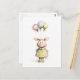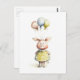Postal Acuarela y dibujo a lápiz de cerdo con globos