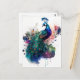 Postal Acuarela y pavo real con tinta