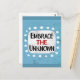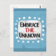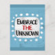 "Abrazar lo desconocido" es una cita inspiradora o motivacional adorable con una forma de acento blanco rodeada de puntos caprichosos de textura blanca.