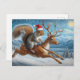 Postal Adorable ardilla Santa Reindeer Navidades Nevando