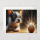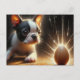 Postal Adorable Boston Terrier Huevo roto de cachorro