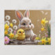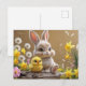 Postal Adorable Bunny y Baby Chick en el Jardín de primav