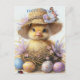 Postal Adorable Duckling Straw Hat Easter Egg Flowers