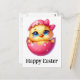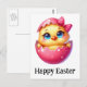 Postal Adorable Funny Cute Pascua Bebé Pollo Rosa Huevo