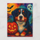 Un adorable perro de montaña de Berna en una escena de Halloween al estilo de las tintas de alcohol