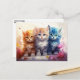 Tres inocentes gatitos coloridos y flores rosas en un ilustracion de estilo pintoresco. La parte posterior incluye un lugar para el número de miembro de posttravesía o puede eliminarlo. #posta