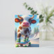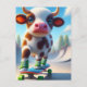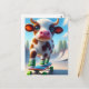 Postal Adorable Mini Skateboarding de Vaca Marrón y Blanc