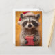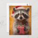 Postal Adorable Raccoon en un Sombrero de Santa que sosti