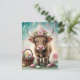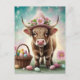 Todos los derechos reservados © Angelandspot AI generó adorables vacas Highland en un elegante gorra de Pascua posando junto a una canasta de huevos de Pascua