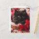 Postal Adorable Valentine Fluffy Black Kitten en la canas