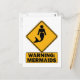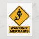 Este diseño de señales de advertencia en forma de diamante muestra la silueta de una sirena con el texto siguiente que dice "Advertencia: Sirenas".