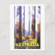 Esta postal es una reproducción de un poster de viajes vintage de Australia, anunciando los árboles más altos del mundo.