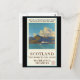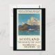 Poster de viajes de época para Escocia para viajar en barco de vapor. Hermosas montañas y lagos.