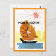 Esta postal es una reproducción de un poster de viajes vintage de Hong Kong en China.