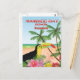 Afiche de viaje de Mammee Bay Beach Jamaica, de un hermoso pájaro exótico en la playa de arena.