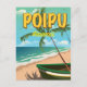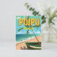 Poster de vacaciones de Poipu Hawaii. Cartel de viaje en barco pesquero a Hawaii.