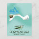 Isla Balear de Formentera Viaje Afiche de la impresión de arte con un pequeño avión verde.