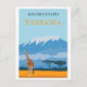¡A cualquiera le encantaría recibir esta postal africana de viaje con un ilustracion retro de una jirafa y el Monte Kilimanjaro en Tanzania, África!