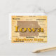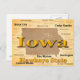 Antiguo periódico Iowa imagen del orgullo del estado incluyendo silueta de mapas con ciudades, pueblos y apodo.