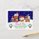 Diseño de tren de jengibre de Navidad con fondo azul y copos de nieve superpuestos