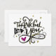 ©2019, diseño de tarjeta postal con letra a mano por Dio Perez. La tarjeta dice: "Agradecido contigo". Todos merecen saber que son apreciados, así que envíales una postal para recordárselo! ¿Tienes un amigo increíble, pareja, maestro, barista, terapeuta, hijo o padres increíbles? Haz que su día sea un poco más brillante y hazles saber que estás agradecido de tenerlos en tu vida.
