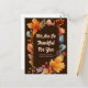Estamos muy agradecidos por usted. Hermosas tarjetas postales de Acción de Gracias de color marrón oscuro para que un negocio envíe a sus clientes su gratitud durante la temporada de fiestas. Personalice con el nombre de su empresa dentro del follaje otoñal de acuarela de hojas anaranjadas. Mensaje personalizado en la parte posterior para marketing de otoño.