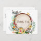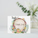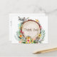 Una manera rápida y fácil de agradecer a los que vinieron a tu ducha y bendecieron tu recién nacido con regalos. Personalice este bosque rústico de vegetación gracias postal con su propia redacción. Diseño con animales boscosos alrededor de trozos de madera adornados con vegetación acuática y florales. Racco, ratón, erizo y pájaro.