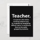 Tarjeta postal de agradecimiento para maestros en negro y blanco diseño original de Nisha Prabhu. ¡Muestre su gratitud sincera con nuestra elegante tarjeta postal de agradecimiento para maestros en negro y blanco! Esta tarjeta postal bellamente diseñada presenta una cita inspiradora y un tema atemporal en negro y blanco, lo que la convierte en la forma perfecta de expresar su agradecimiento por los increíbles educadores en su vida. Ya sea para la Semana de Agradecimiento a los Maestros, un agradecimiento de fin de año o simplemente un acto aleatorio de amabilidad, esta tarjeta postal es una forma encantadora de transmitir su admiración.