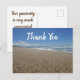 Hazle saber a alguien que lo aprecias con esta hermosa postal de la costa del Pacífico. La larga extensión de arena marrón se inclina hacia las olas del océano azul. Un brillante cielo azul con una nube blanca esponjosa proporciona el telón de fondo para "Gracias" que se destaca en letra blanca. El dorso presenta palabras adicionales de agradecimiento. Todo el texto se puede personalizar fácilmente si lo desea.