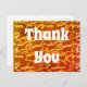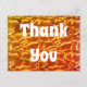 Di gracias con esta elegante tarjeta postal naranja brillante. Esta tarjeta postal económica presenta tonos amarillos y naranjas brillantes en un patrón abstracto que se asemeja al metal líquido que se arruga y se pliega al endurecerse. Personalice rápida y fácilmente las palabras "gracias" que aparecen en el centro de esta vibrante nota de agradecimiento.