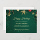 Muestre a sus clientes y/o clientes cuánto aprecia su negocio con esta elegante tarjeta postal de agradecimiento al cliente de vacaciones. La parte delantera es en azul bosque verde, con decoraciones navideñas doradas y rojas, ramas de pino y luces sutiles como marco para su texto personalizado. Su mensaje está en 5 campos de texto dorado; ¡haz que diga lo que quieras! Si necesita agregar texto adicional en la parte posterior, elija personalizar.