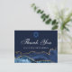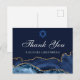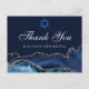 El elegante azul marino y el ágata dorada decoran el lateral de esta moderna tarjeta de agradecimiento para Bat Mitzvah. ¡Mazel Tov! Personaliza con tu nombre debajo de la Estrella de David. Tarjeta postal perfecta para una familia judía chic y elegante que celebra a una niña siendo llamada a la Torá.